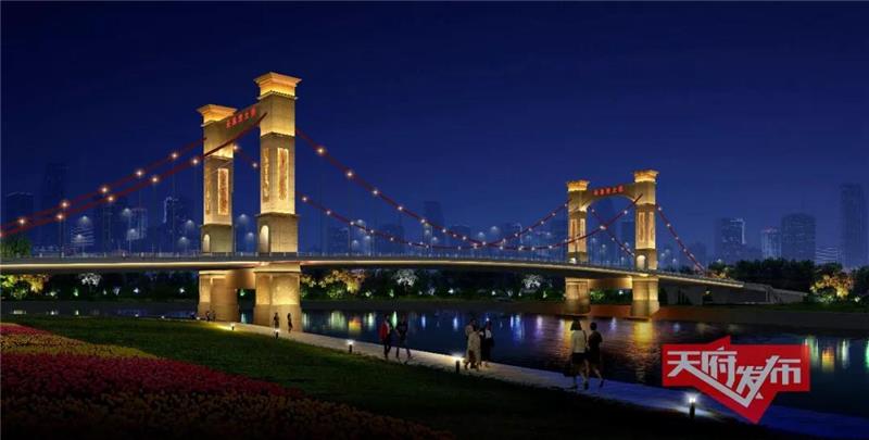 桥梁北起益州大道与规划道路交叉口,向南依次跨越北岸滨江路、锦江、南岸滨江路后下地,全线长1119米,并预留远期有轨电车通行空间,桥梁近期按双向8车道加非机动车道和人行道设置。